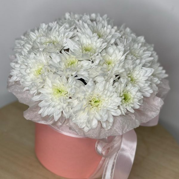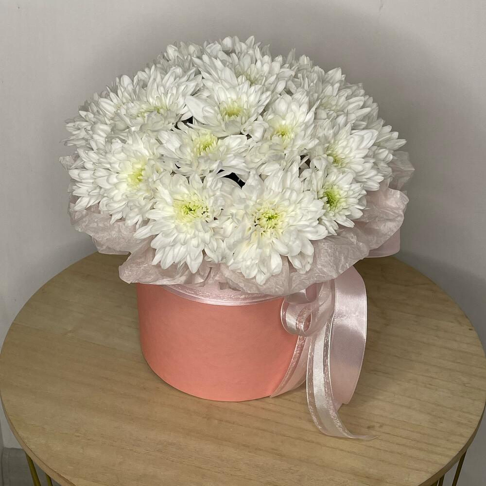 Шляпная коробка с хризантемой в Бикине